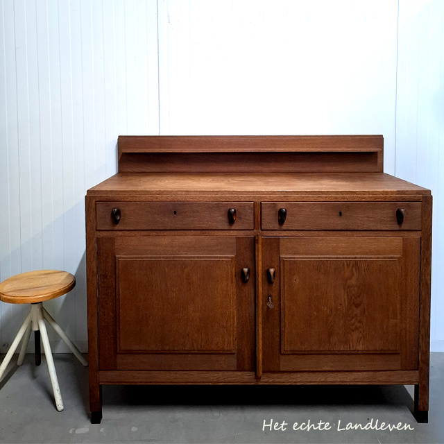 Artikelnummer: i4656 OverzichtEen prachtig en bijzonder Vintage Mid Century dressoir in Amsterdamse stijl. Dit dressoir is echt een one of a kind en valt direct op door de geweldige details.
